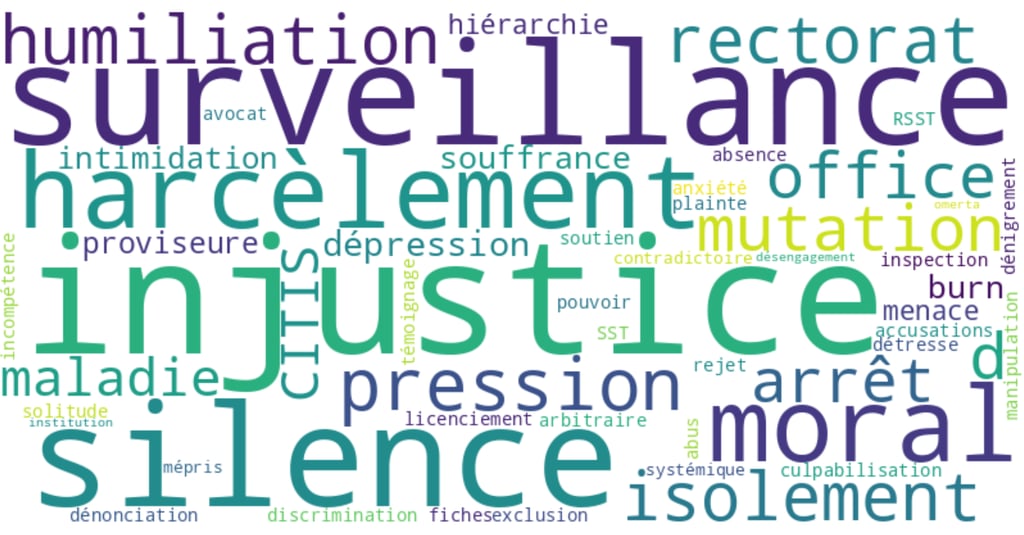 Or les témoignages qui parviennent aux collectifs montrent exactement l’inverse : les mécanismes sont souvent étonnamment similaires. Isolement professionnel. Pressions hiérarchiques. Dégradation progressive des conditions de travail.